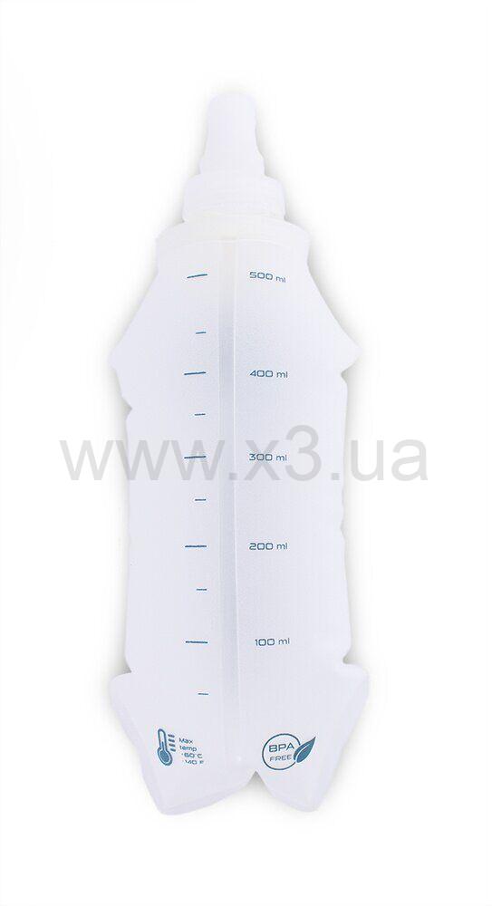 Мягкая фляга объемом 500 мл. Отлично подойдет для велосипедистов и бегунов, ведь из нее можно пить прямо на ходу. Мягкие стенки сжимаются, что препятствует плесканию воды внутри емкости. Компактные формы позволяют поместить ее в карман рюкзака или жилета.