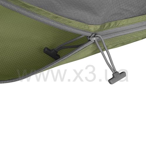 Корпус гамака изготовлен из высокопрочного моноволокна Nylon-6, сетка для защиты от насекомых