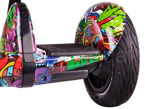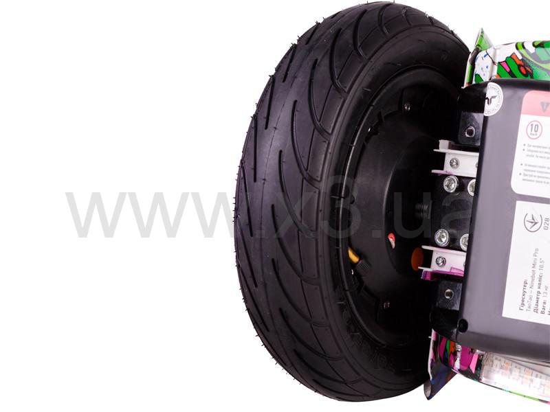 Колеса имеют диаметр 10,5 дюйма, что значительно повышает устойчивость на дороге, даже со значительными неровностями. Благодаря увеличенному объему колес, производительность гироскутера поднялась.