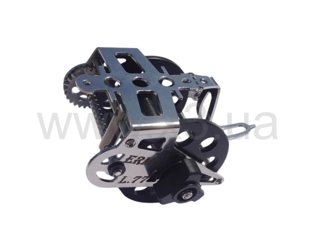 Изюминкой этой катушки является система укладки линя из винтов и шестеренок, которая позволяет аккуратно и ровно укладывать верёвку на катушку, что позволяет вместить до 100 метров нити.