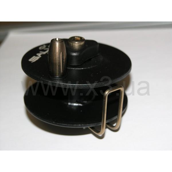 На катушку можно намотать 50 м линя диаметром 1,5 мм или 30 м линя диаметром 1,7 мм.