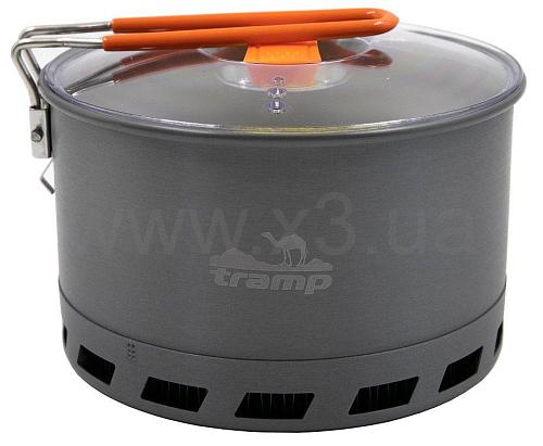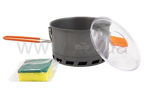 Походный котелок со встроенным теплообменной системойф и ветрозащитным экраном. Складные ручки покрытые пластиком надежно фиксируют крышку в походном положении и позволяют не обжечь руки при приготовлении пищи.