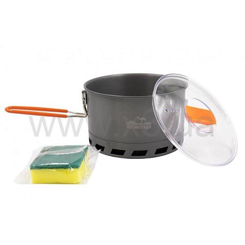 Походный котелок Tramp TRC-119 на 2.2 л со встроенным теплообменником. Изготовлен из легкого и надежного анодированного алюминия, который повышает устойчивость к механическим повреждениям и коррозии. Главной особенностью TRC-119 есть встроенный теплообменник-радиатор комбинированный с ветрозащитным экраном. Такая конструкция позволяет экономить расход топлива на 40% и сократить время закипания воды на 30% за счет увеличенной площади нагрева, аккумулирование тепла и предотвращения его утечки. Котелок оснащен складной ручкой с фиксатором. Поставляется с сетчатым нейлоновым мешочком для транспортировки и хранения, а также с губкой для мытья.