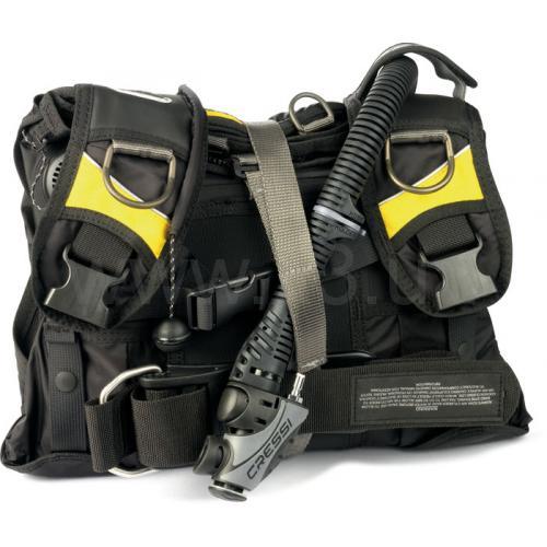 Спинка мягкая и со снижающими давление на спину щитками, имеет сзади резиновую поверхность, препятствующую соскальзыванию баллона и двойной ремень для его безопасного удержания. Два вместительных кармана на молнии позволяют разместить в них аксессуары крупных размеров.