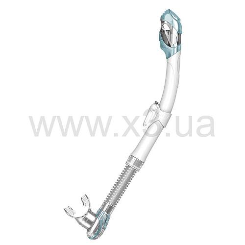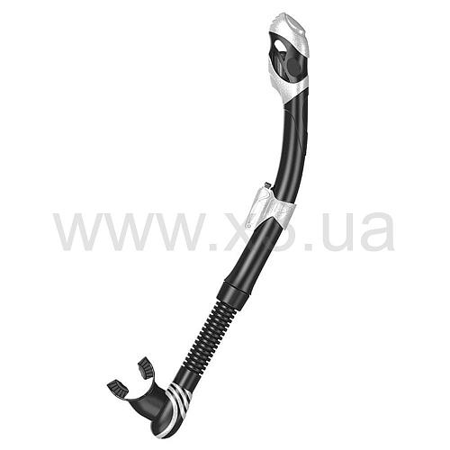Трубка выполнена из пластика с гофрированной силиконовой вставкой, позволяющей удобно располагать ее на голове ныряльщика с наибольшим комфортом.