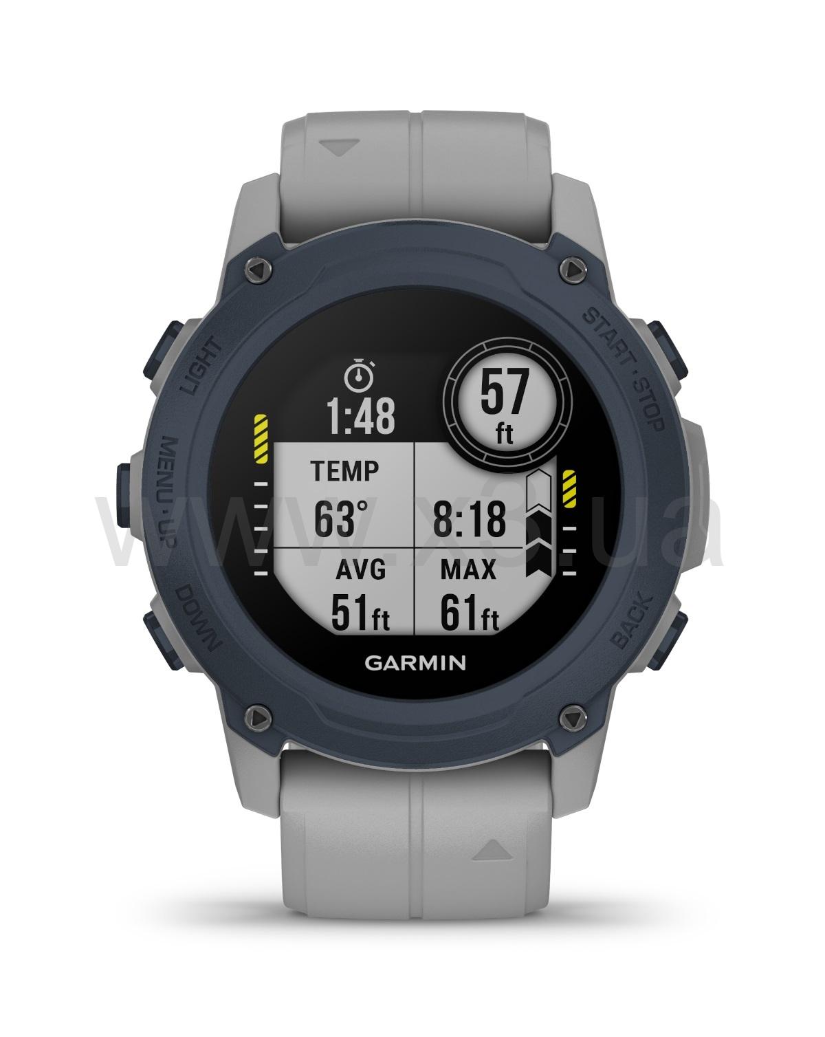 Этот надежный подводный компьютер Garmin Descent G1 Powder Gray 010-02604-11 рассчитан на погружение в воду на глубину до 100 метров, оснащен сапфировым стеклом и соответствует стандарту MIL-STD-810.