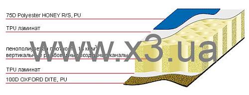 Анатомическая конструкция, ультрапрочное, легкое и тонкое нанесенное изнутри покрытие TPU, а также ромбовидные каналы пенополиуретанового наполнителя обеспечивают надежную герметичность, минимальный вес и объем коврика.
