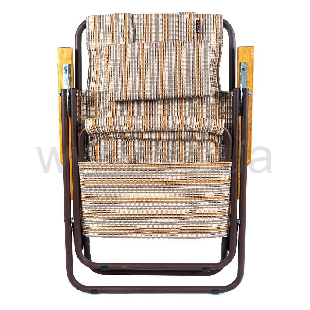 Очень удобен и легок в использовании отдыха шезлонг Ranger Comfort 1. Разлагается шезлонг элементарно. Каркас надежен, стальная труба имеет полимерное покрытие. Подлокотники деревянные, что очень приятно и удобно. Шезлонг Ranger Comfort 1 имеет четыре положения наклона спинки, регулируемых под подлокотниками. Ткань «сеточка» – вам не будет жарко в шезлонге летом на природе или в тенистом саду. В подголовнике на липучке размещается съемная подушка.