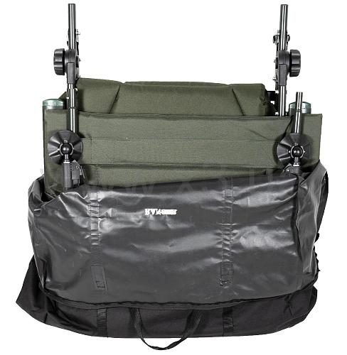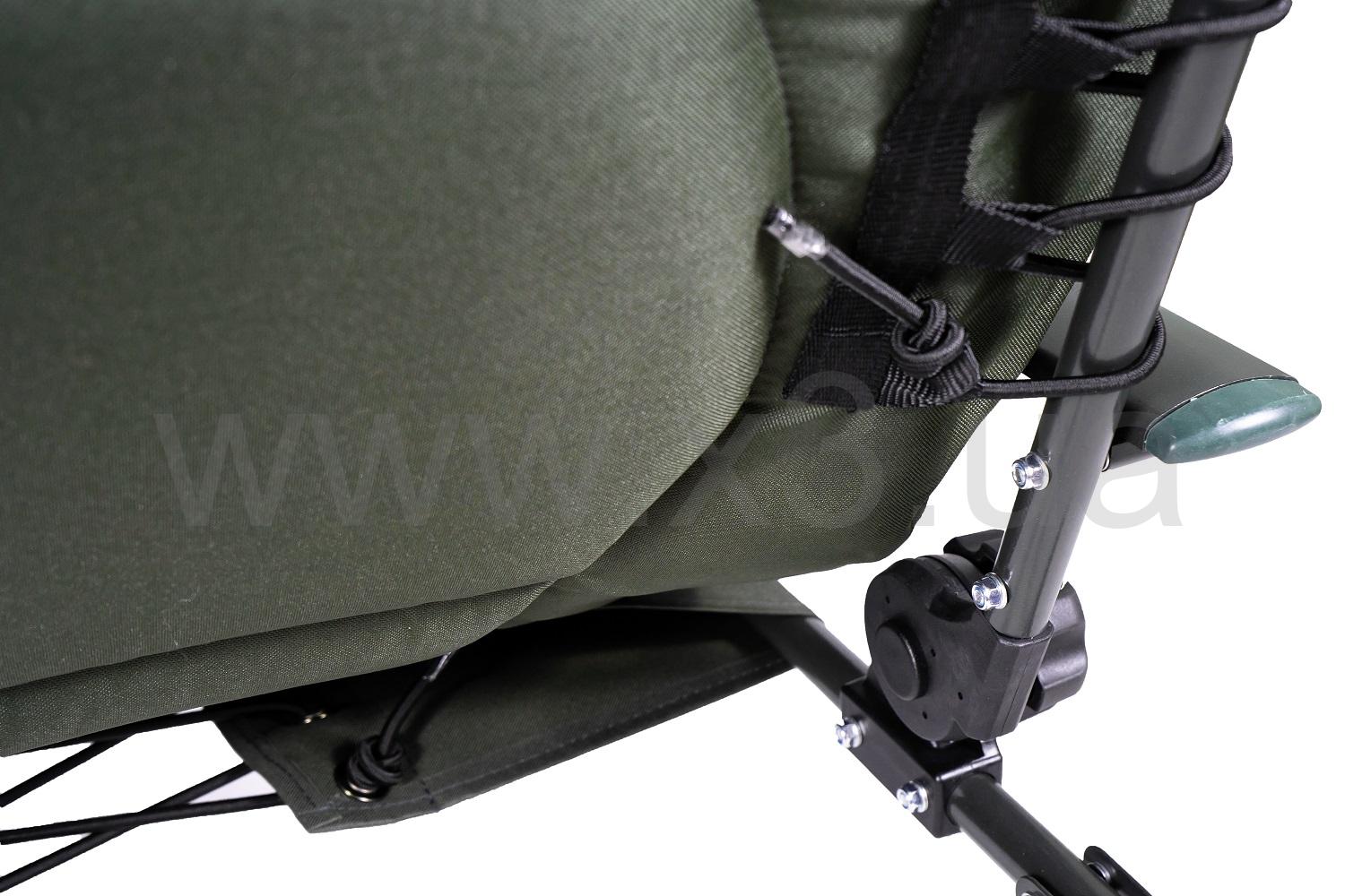Ножки устойчивы и не погружаются в грунт, благодаря пятакам увеличенной площади - 9 см.. Стальная конструкция кресла мощная и, в тоже время, максимально облегчена за счет алюминиевых подлокотников. Для большего удобства в комплекте идет чехол для транспортировки, Вам больше не нужно искать куда всунуть кресло, или докупать чехол. Спинка регулируется под любым углом, вплоть до горизонтального положения, конструкция фиксатора – закрутка, более надежная. Благодаря тому, что конструкция кресла крепится болтами, можно легко снять ткань для стирки и без проблем крепить обвес для рыбалки. При необходимости можно снять подлокотники. В верхней части кресла находится мягкая подушка, отдельно не нужно будет брать с собой. В средней части кресла предусмотрена дополнительная вставка с наполнителем из дышащей ткани, благодаря чему менее устаешь и не будет жарко при длительном нахождении на кресле. Тканевая основа больше чем ширина кресла,