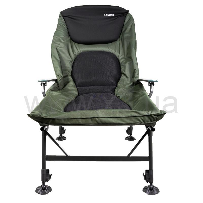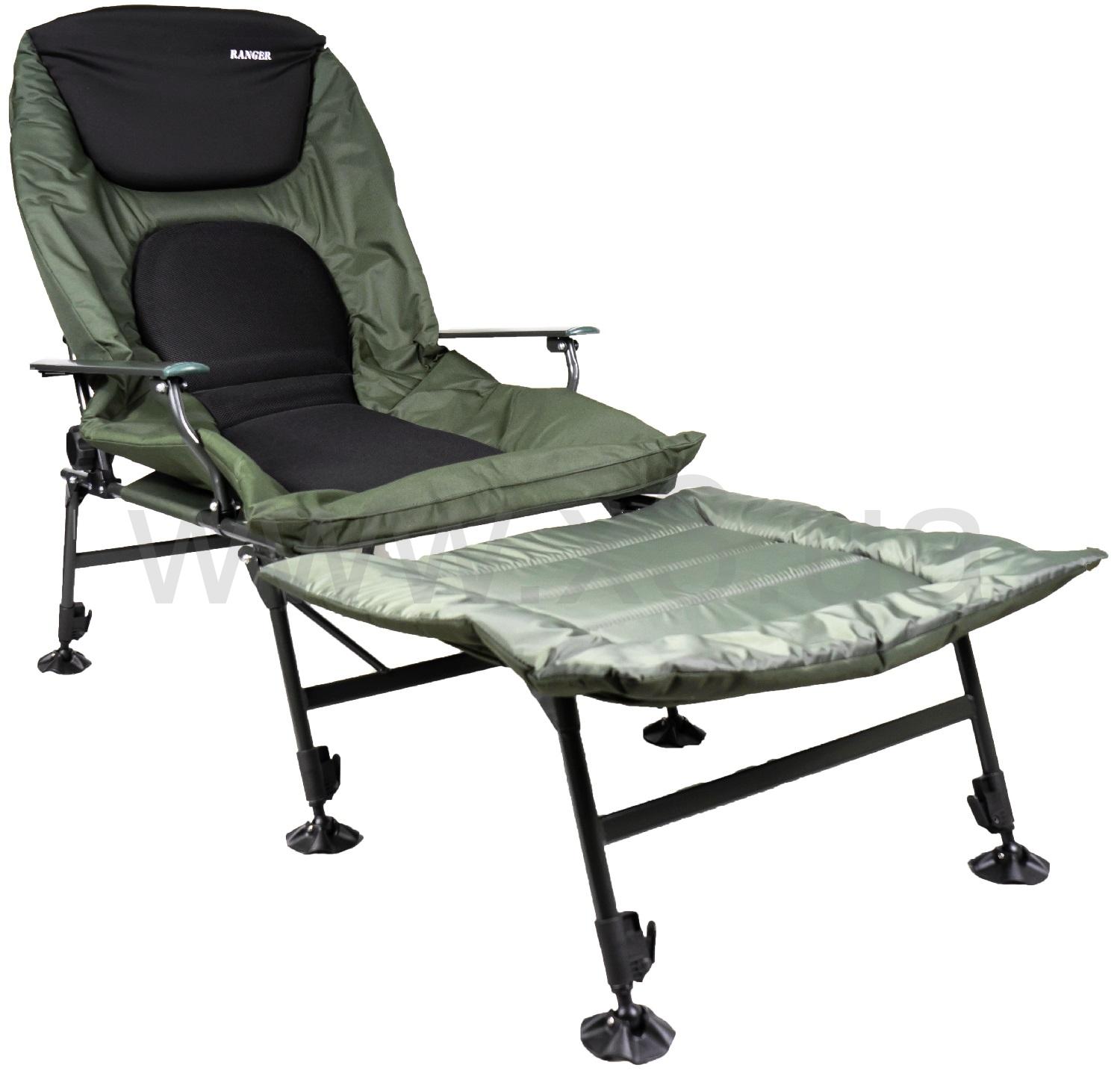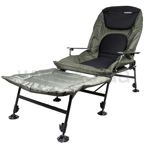 Большое карповое кресло-кровать Ranger Grand SL-106 – это отличный выбор для рыбаков. Больше нет необходимости возить с собой раскладушку, данная модель сама является кроватью. Кресло легко и без труда трансформируется в раскладушку с помощью приставки. Данная модель сочетает в себе все лучшее от карпового кресла Ranger Wide Carp SL-105 и карпового кресла кровати Ranger SL-104, широкое кресло плюс приставка делают данную модель лучшей из нашего модельного ряда на данный момент. Размеры значительны, длина с приставкой составляет 208 см, удобно сможет разместиться даже очень высокий мужчина. К примеру такую длину имеет раскладушка Ranger BED 82 , так что это кресло вполне оправдывает имя Grand.Регулировать ножки можно под любым углом и высотой, благодаря чему Вы всегда будете располагаться на любой неровной поверхности ровно.