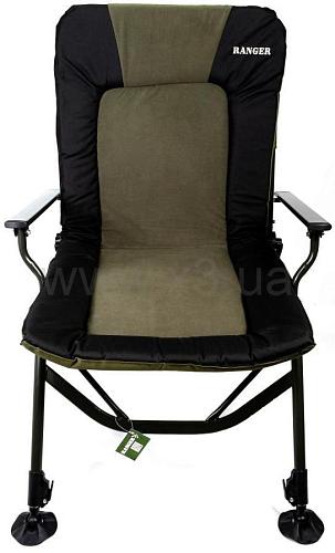 Карповое кресло Ranger Strong SL-107 – огромное, мягкое и очень широкое карповое кресло. Основное его достоинство в том, что имеет флисовую средину, которая придает комфорт во время долгой рыболовной сессии. Конструкция усилена дополнительно металлическими распорками, что позволяет сидеть в кресле с очень большой комплекцией. Кресло легко располагается на любой неровной поверхности, за счет регулирующихся ножек, есть возможность поднять на нужную высоту и под любой угол, Вы будете располагаться на поверхности ровно. Ножки устойчивы и не погружаются в грунт, за счет увеличенной площади. Стальная конструкция кресла мощная и, в то же время, максимально облегчена за счёт алюминиевых подлокотников. В задней части кресла расположен большой карман, для размещения мелких вещей. Снизу сидение кресло усилено резинками натяжения, для того чтоб кресло не провисало. Мягкий наполнитель — флис придает еще больше комфорта и процесс и удобства. Спинка регулируется под любым углом и тогда кресло можно использовать как раскладушку. Благодаря тому, что конструкция кресла крепится болтами, можно легко снять ткань для стирки и без проблем крепить обвесы для рыбалки. Кресло для отдыха на природе, на даче и во дворе. Компактно складывается для хранения и транспортировки. Пятаки на ножках увеличенной площади -9 cм, большая площадь не позволяет погружаться в землю или песок.