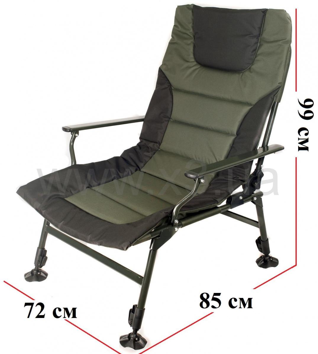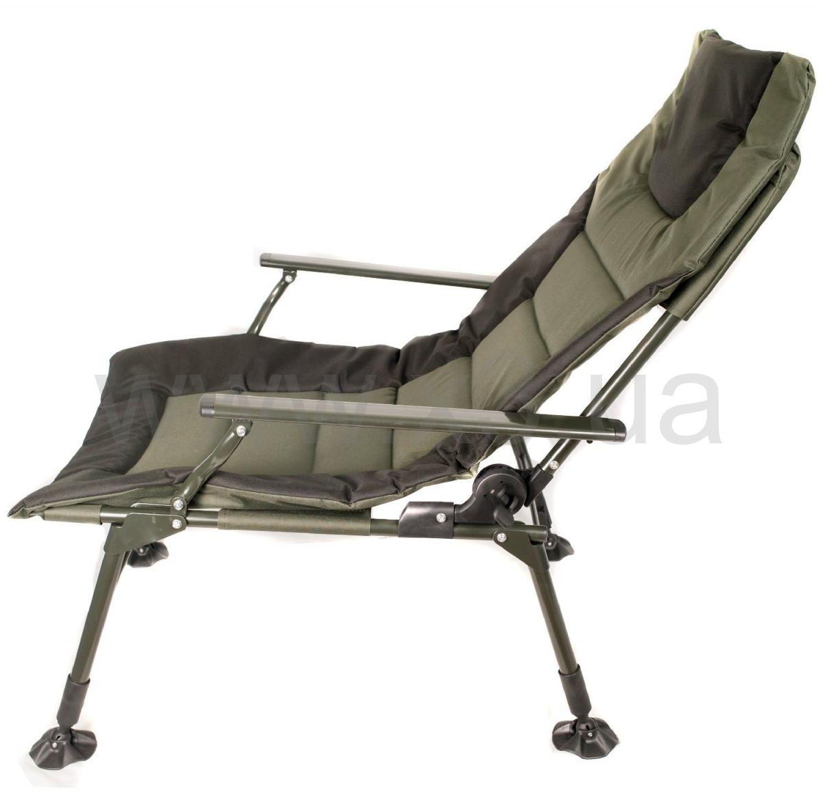 Спинка регулируется под любым углом и тогда кресло можно использовать как раскладушку. Благодаря тому, что конструкция кресла крепится болтами, можно легко снять ткань для стирки и без проблем крепить обвес для рыбалки.
