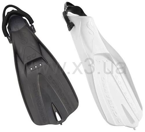 Ласты Scubapro GO TRAVEL для подводного плавания с отверстиями в лопасти и с регулируемым ремешком.