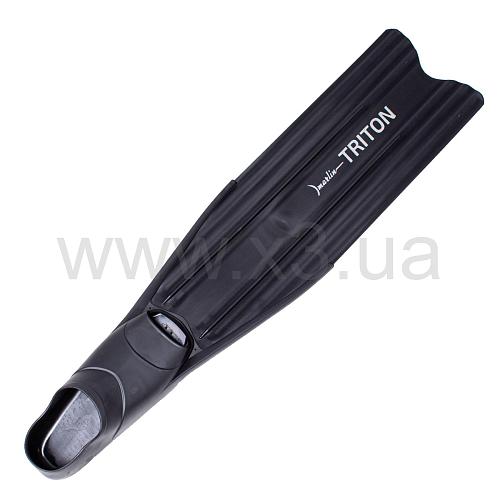 Ласты Marlin Triton (Марлин Тритон) – легкие ласты для подводной охоты и фридайвинга. Фиксированная лопасть изготовлена из полипропилена, имеет среднюю жесткость. Удобная калоша изготовлена из термопластичной резины с разной степенью жесткости. Жесткая подошва увеличивает передаваемую энергию, мягкий верх обладает хорошей эластичностью обеспечивает удобство одевания и комфорт при длительном использовании. Благодаря слому лопасти в 17 градусов, обеспечивается оптимальный угол наклона ласты к плоскости стопы, в результате чего снижается нагрузки на мышцы стопы и голени. Расположенные по всей длине лопасти направляющие потока предотвращают занос лопасти на бок.