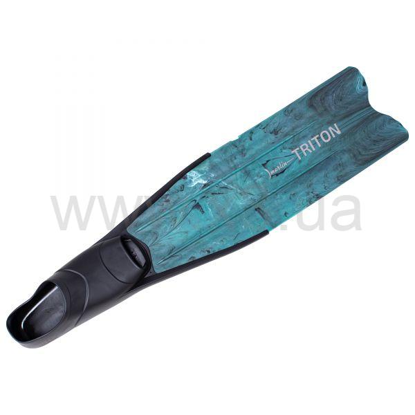 Ласты Marlin Triton (Марлин Тритон) – легкие ласты для подводной охоты и фридайвинга. Фиксированная лопасть изготовлена из полипропилена, имеет среднюю жесткость. Удобная калоша изготовлена из термопластичной резины с разной степенью жесткости. Жесткая подошва увеличивает передаваемую энергию, мягкий верх обладает хорошей эластичностью обеспечивает удобство одевания и комфорт при длительном использовании. Благодаря слому лопасти в 17 градусов, обеспечивается оптимальный угол наклона ласты к плоскости стопы, в результате чего снижается нагрузки на мышцы стопы и голени. Расположенные по всей длине лопасти направляющие потока предотвращают занос лопасти на бок.