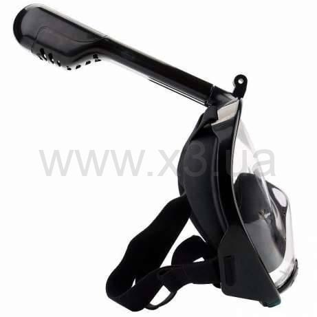 Состоит полнолицевая маска из собственно маски и сухой трубки для плавания, которая лёгким движением руки монтируется в маску. Герметичность соединения обеспечивается с помощью герметичной прокладки. К лицу ныряльщика прилегает мягкий силикон, очень приятный на ощупь. Ремешки маски также выполнены из силикона: их можно отрегулировать, подогнав маску под индивидуальное лицо.
