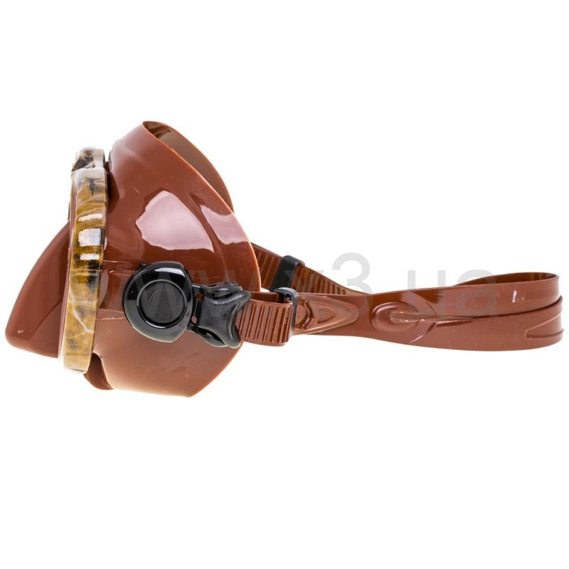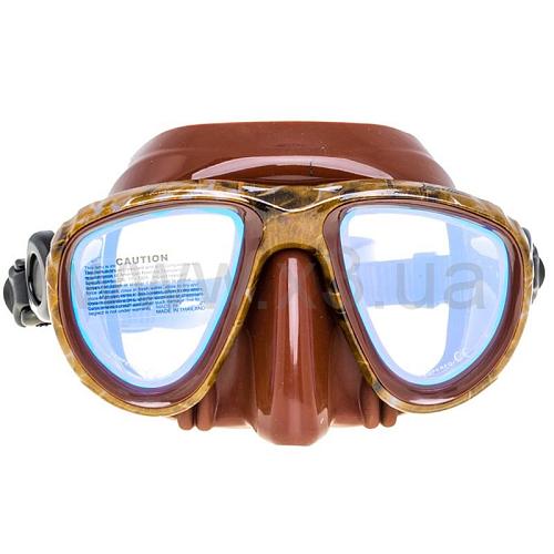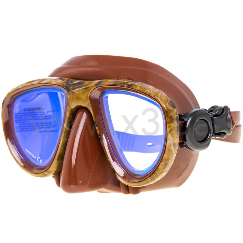 За основу маски Marlin Camo brown (Марлин Камо браун) взят мягкий коричневый силикон, благодаря которому маска плотно и комфортно прилегает к лицу, а быстросъемная система креплений позволит без осложнений освободиться от маски в любой ситуации. Стекла разделены на две части для минимализации подмасочного пространства. Внутри маски имеется выемка для переносицы, что позволяет охотнику погружаться без дискомфорта на большие глубины. Следует отметить, что просветленные стекла служат для большего контраста под водой (особенно в мутной воде) и значительного улучшения видимости в темное время суток при свете фонаря.