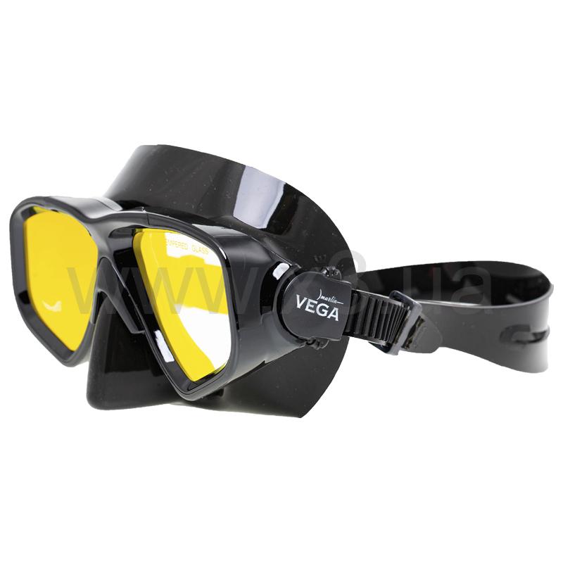 Маска Marlin Vega с просветленными стеклами (Марлин Вега) – двухстекольная маска для подводной охоты и дайвинга. Благодаря минимальному объему подмасочного пространства обеспечивает широкий угол обзора. Просветленные стекла служат для большего контраста под водой (особенно в мутной воде) и значительно улучшают видимость в темное время суток при свете фонаря. Мягкий гипоаллергенный силикон обтюратора обеспечивает безупречное прилегание для всех типов лица. Удобная и быстрая регулировка натяжения ремешка. Фасонный выступ для носа обеспечивает комфортную продувку.