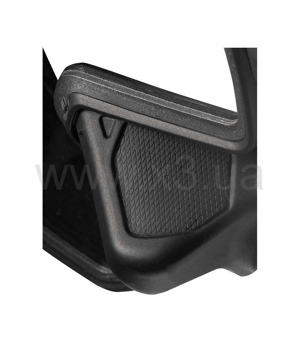 Пряжки маски значительно сдвинуты назад и расположены непосредственно на силиконовом обтюраторе, что значительно снижает вес и повышает гидродинамику.