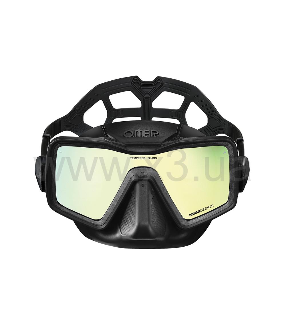 Пряжки маски значительно сдвинуты назад и расположены непосредственно на силиконовом обтюраторе, что значительно снижает вес и повышает гидродинамику. Линзы покрыты специальным зеркальным покрытием, которое скрывает от внимательного хищника глаза охотника.