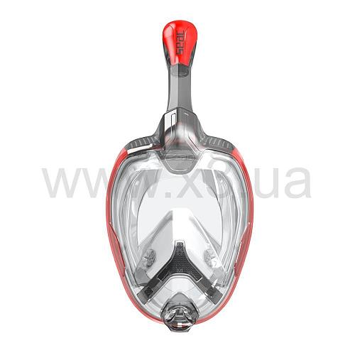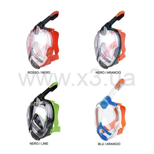 Трубка с сухим верхом, чтобы вода не попала в трубку. Панорамное стекло с полем обзора 180°. Большой удобный корпус из жидкого силикона, рама и линза изготовлены из поликарбоната. Удобный ремешок для удержания полнолицевой маски в голове из эластичной ткани. Эффективная система дренажа воды через дренажный клапан в нижней части лицевой панели.