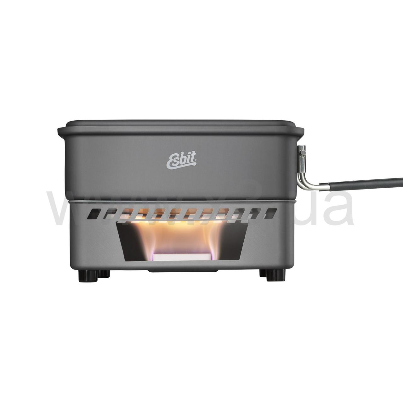 Легкий и компактный набор для приготовления пищи от немецкого бренда Esbit. Компактная кухонная плита с очень маленьким размером. Изготовлена из очень легкого твердого анодированного алюминия. Набор для приготовления пищи может работать с таблетками твердого топлива Esbit 27 г или таблетками 14 г. Идеально подходит при коротких поездках для приготовления напитков и пищи. Практичная вешалка для крышки. Кастрюля на 1100 мл с индикатором емкости в мл и унции. Со складной ручкой и удобной сеткой.