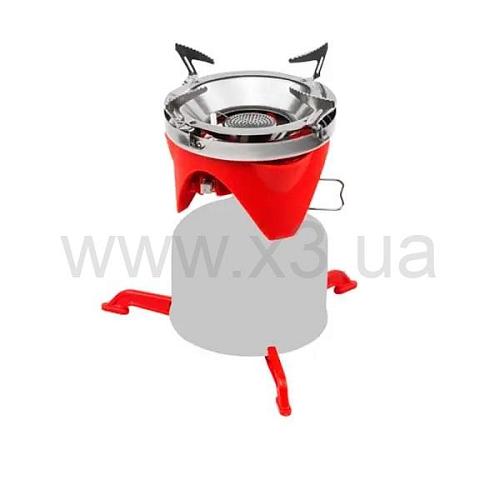 Может использоваться как система приготовления со специальным котелком с радиатором в неопреновом чехле и крышкой, а также за счет насадки-переходника как обычная горелка.