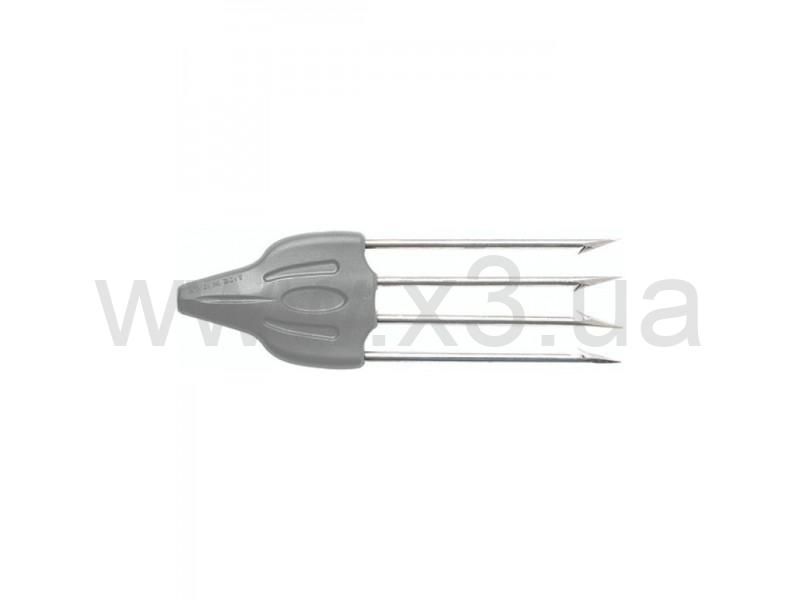Новый четырёхзуб фирмы Salvimar. Оригинальность это многозуба заключается в том, что он имеет два продольных сквозных отверстия-канала. Эти каналы играют роль стабилизаторов, что позволяет многозубу держать более ровную траекторию при выстреле.