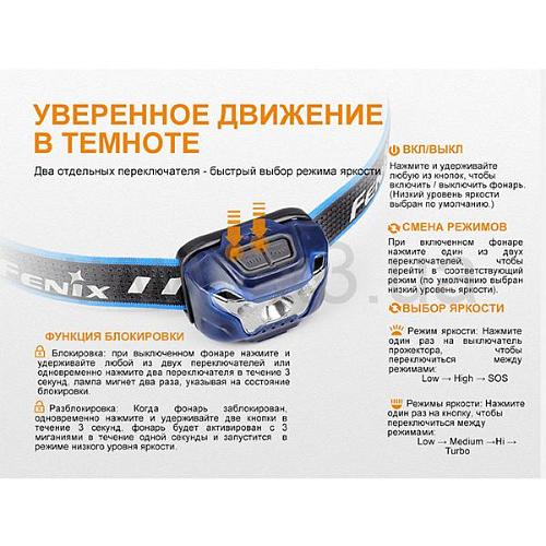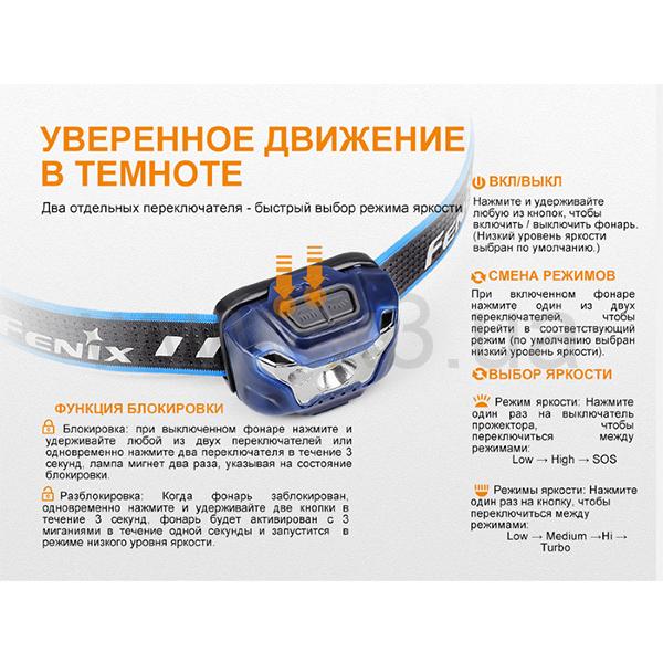 Модель Fenix HL18R сделана легкой и удобной в использовании. Этот налобный фонарь вместе с аккумулятором весит 80 г, может заряжаться от power-банка через кабель USB. Ремешок для него также облегчен, на него нанесены светоотражающие элементы, которые повышают безопасность передвижений в темноте. Fenix HL18R подходит для вечерних пробежек, поездок на рыбалку, в кемпинг, занятий любыми видами спорта, в том числе и экстремальными, выполнения ремонта техники дома или в мастерской. В этот фонарь установлено 3 диода от компаний Cree и Everlight. Это долговечные источники света, работающие на протяжении 50 000 часов. Вместе они поддерживают 7 режимов освещения на ближней и дальней дистанции, среди которых и 1 сигнальный режим.