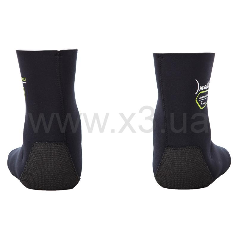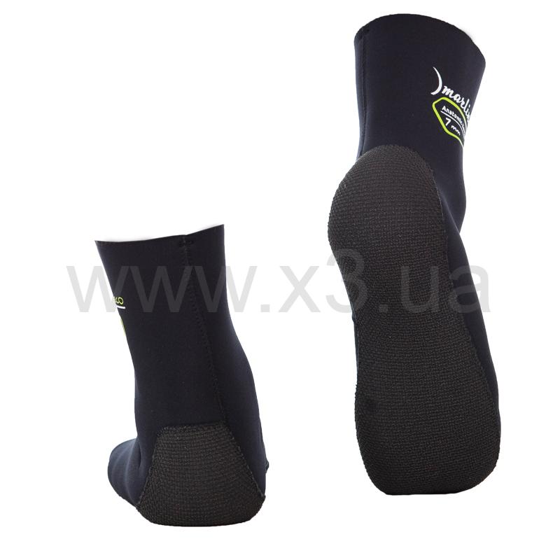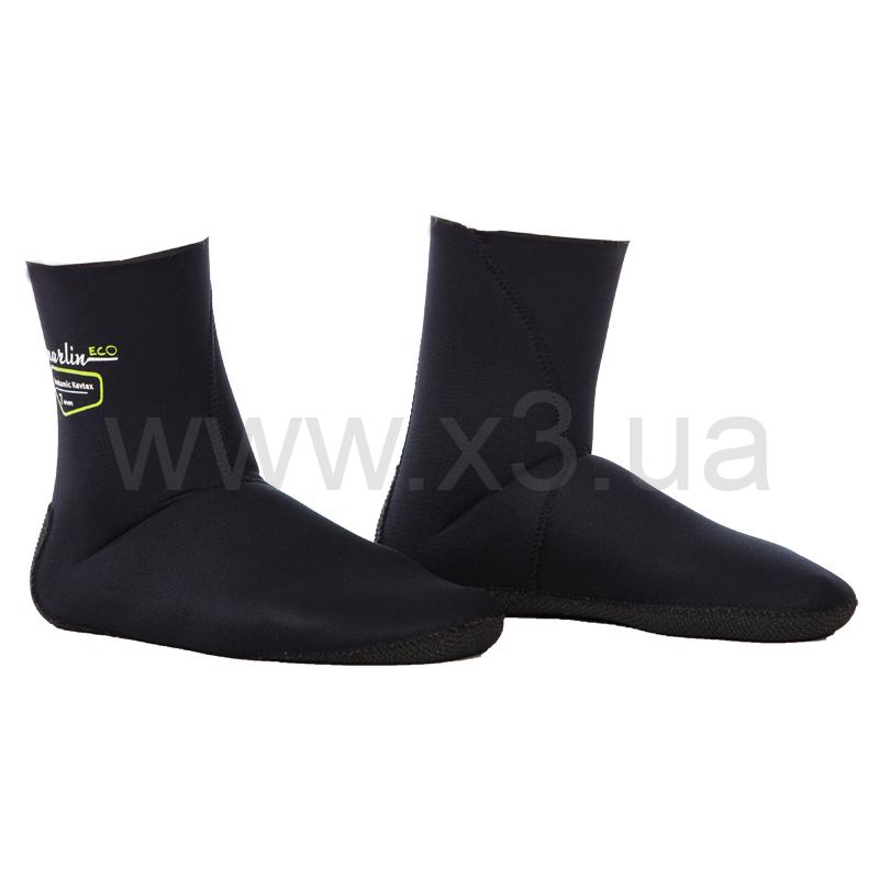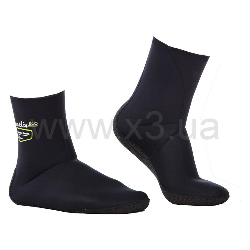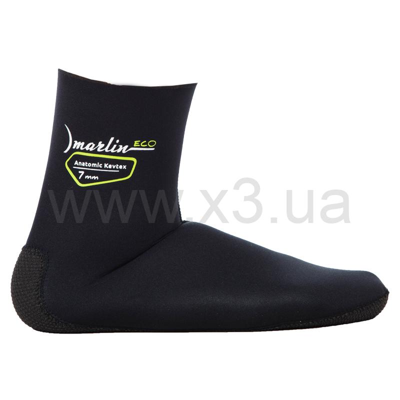 Носки Marlin Anatomic Kevtex Eco (Марлин Анатомик Кевтекс Эко) выполнены из эластичного неопрена фирмы Sheico L, имеют анатомический крой (правый, левый). Внутри – открытая пора, наружное покрытие – нейлон. Подошва для лучшей износостойкости выполнена из более жёсткого компрессионного неопрена и усилена материалом kevlar. Швы проклеены специализированным неопреновым клеем.