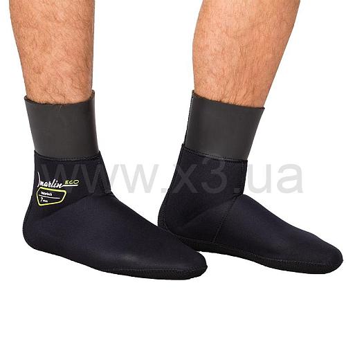Носки Marlin WaterLock Eco Sandwich (Марлин Ватерлок Эко сэндвич) выполнены из эластичного неопрена фирмы Sheico L, имеют анатомический крой (правый, левый). Внутри – открытая пора, наружное покрытие – нейлон; верхняя часть носка выполнена из материала smoothskin sandwich. Подошва для лучшей износостойкости выполнена из более жёсткого компрессионного неопрена и усилена материалом дюратекс. Швы проклеены специализированным неопреновым клеем. Благодаря сэндвич-технологии верхняя часть носка из smoothskin неопрена надежно пришивается к нейлону основного носка. Таким образом, мы получаем инновационный носок с уникальными характеристиками, сочетающий в себе все преимущества носка с обтюрацией из smoothskin неопрена и носка с открытой порой внутри, а именно: