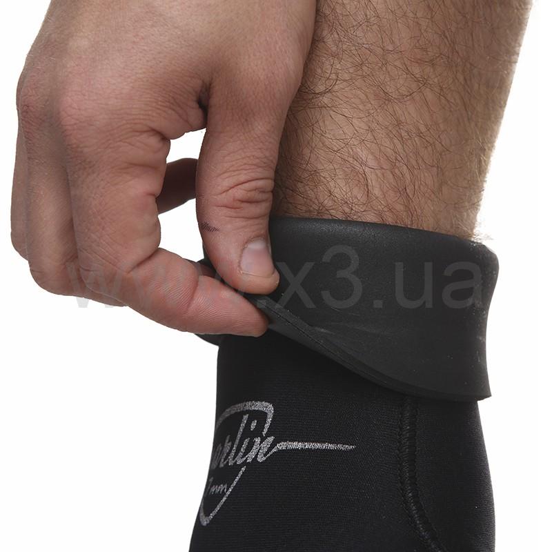Носки Marlin WaterLock Sandwich (Марлин Ватерлок сэндвич) выполнены из эластичного неопрена, имеют анатомический крой (правый, левый). Внутри - открытая пора, наружное покрытие – нейлон, верхняя часть носка выполнена из материала smoothskin sandwich. Подошва, для лучшей износостойкости, выполнена из более жесткого компрессионного неопрена и усилена материалом дюратекс.