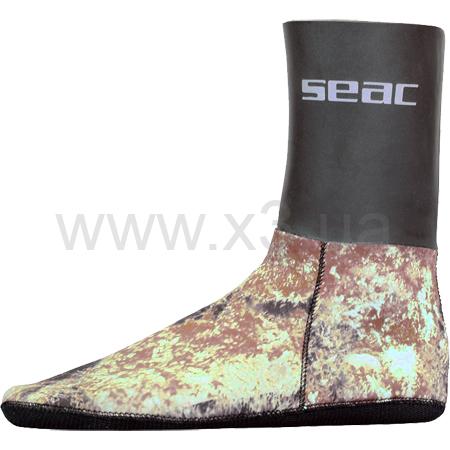 Неопреновые носки толщиной 3,5 мм, расцветки "миметик". Идеально подходят для подводных охотников. Верхняя часть носков изготовлена из материала SMOOTH SKIN ("гладкая кожа") для улучшения обтюрации на лодыжках пловца. Рекомендуется одевать под обтюратор гидрокостюма. Многие дайверы используют эти носки для большего сохранения тепла в гидрокостюмах сухого типа. Также прекрасно подходят для ласт с закрытой пяткой.