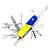 Дополнительные функции: большой клинок, малый клинок, пила по дереву, напильник, лезвие для чистки рыбы, линейка (извлечение рыболовных крючков), консервный нож, открывалка (плоская отвертка, снятие изоляции), ножницы, плоскогубцы (кусачки), штопор, многофункциональный крючок, стамеска, шило, пинцет, зубочистка, игла