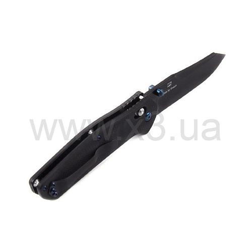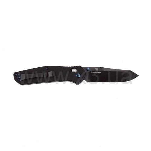 Для производства клинка применяется сталь американского производства – 440С. Её часто используют при изготовлении ножей, ведь у этого материала много положительных качеств. У него отличные режущие свойства, высокая стойкость к разным видам коррозии, ножи из 440С долго не тупятся. Сталь закалена до твёрдости в 58 HRC, она легко поддаётся заточке. Клинок выполнен в классической форме drop-point, которая даёт ножу высокую проникающую способность, но не снижает удобство реза.
