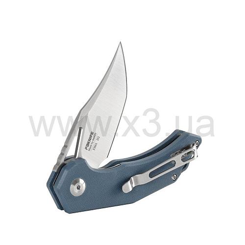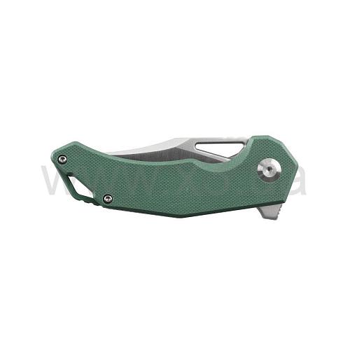 Клинок извлекается как с помощью незначительного отверстия под большой палец у основания, так и за счет флиппера с противоскользящими пропилами. Фиксируется лезвие за счет наличия стального замка типа Liner-Lock.