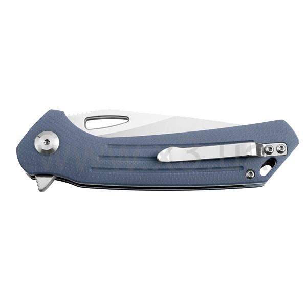 Нож складной Ganzo Firebird FH921 представляет собой карманное изделие, рассчитанное, в том числе, на использование в туризме. Особенность данной модели – в нетипичной форме рукояти, которая имеет выемку в верхней части ближе к обуху. Насечки на обухе способствуют лучшему сцеплению с пальцем пользователя. Другая характерная черта – отверстие в области клинка на месте, где обычно располагается шпенёк. Конструктивный элемент помогает легко открыть изделие рукой. Осевой винт обеспечен круглым металлическим подшипником.