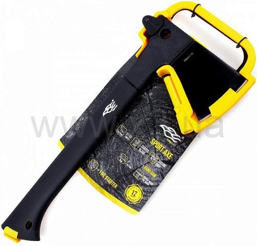 Модель FSA01-YE на самом деле представляет собою не просто топор, а целый комплект различных инструментов. В наборе имеется также пила и огниво, так что имея его под рукою, вы точно сможете заготовить дрова нужного размера и разжечь огонь.