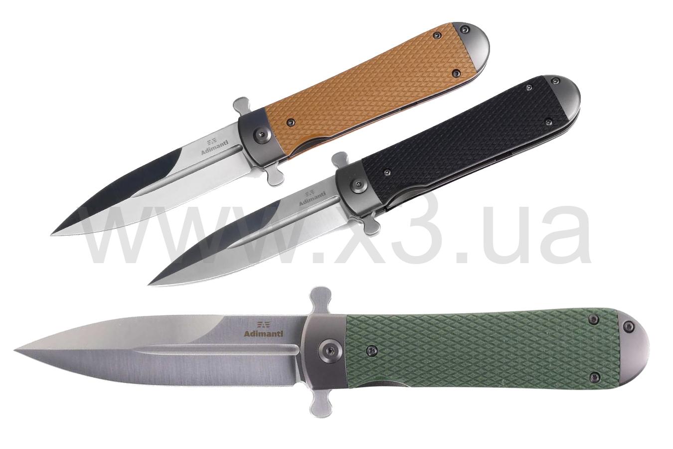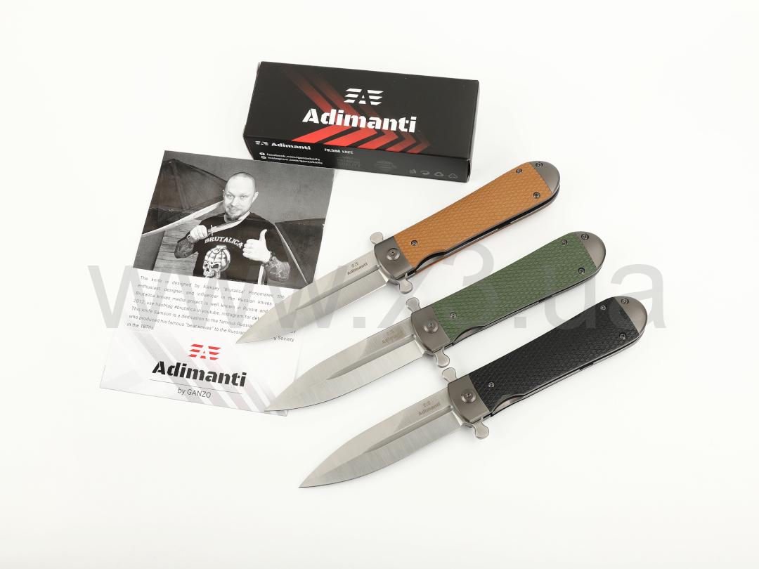 Нож Adimanti Samson имеет визуальное сходство с копьем благодаря симметричному клинку. Изделие рассчитано на использование как в городских, так и полевых условиях, поскольку оно имеет компактные габариты для комфортного ношения в кармане и обладает высокой стойкостью к воздействию агрессивных сред, в особенности ряда кислот и обычной влаги.