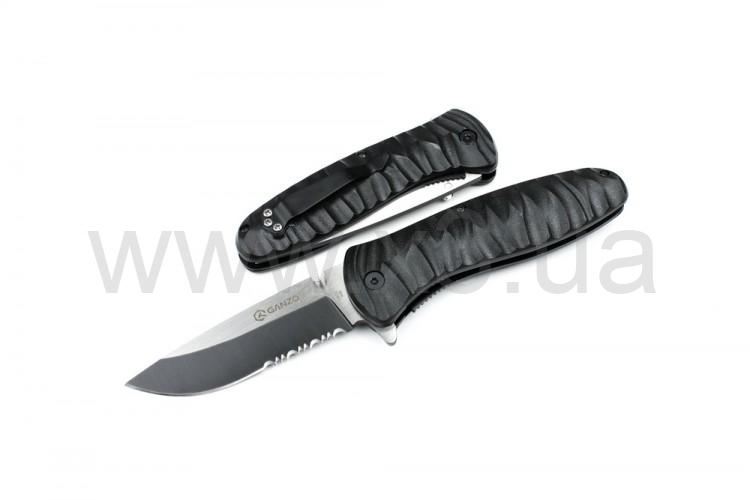 Складной нож Ganzo G622-B-5S объединил в одном клинке преимущества прямой и серрейторной заточки.