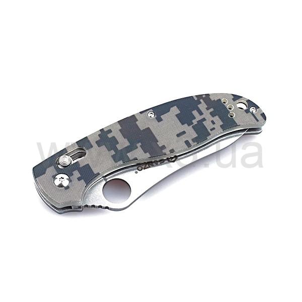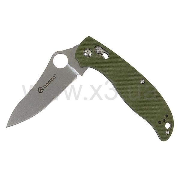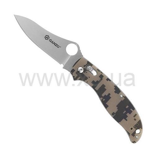 Клинок Ganzo G733 по форме напоминает клинок Spyderco STARMATE- даже знаменитое отверстие для открывания на месте. Длина клинка 91мм, толщина 3,3мм. Клинок Ganzo G733 выполнен из стали 440с. Спуски обуха обеспечивают хороший рез, удобство заточки и пользования.