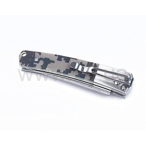Та часть рукоятки, что ближе к клинку тоже изготовлена из металла. А дальше используются текстурные пластиковые накладки. Для Ганзо G7361 был выбран композитный стеклопластик, который еще называют G10. Его отличительные черты - прочность, долговечность, невосприимчивость к различным негативным факторам внешнего воздействия. Модель выпускается в трех вариантах - с рукояткой черного, зеленого или же камуфляжного цвета.