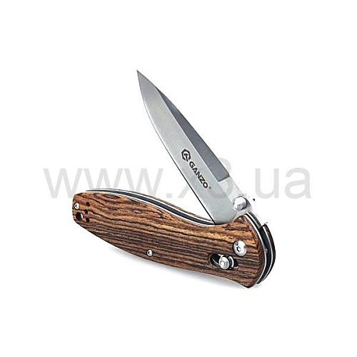 Ganzo G738 выпущен из нержавейки, которая нашла широкое применение в этой отрасли. Марка 440С содержит в составе целый ряд легирующих добавок, которые позволяют улучшить ее свойства, повысить стойкость к ржавлению и способность оставаться остро заточенной. Геометрия клинка грамотно продумана. Это Drop Point с пониженной линией обуха. Острие клинка немного приподнято, за счет чего режущая кромка фактически удлиняется. Заточка ножа ровная и ее легко подновить, используя самую обычную карманную точилку. Что касается габаритов клинка, то это длина 8.9 см, позволяющая легко использовать нож для чистки рыбы, приготовления бутербродов, и толщина 3.3 мм.