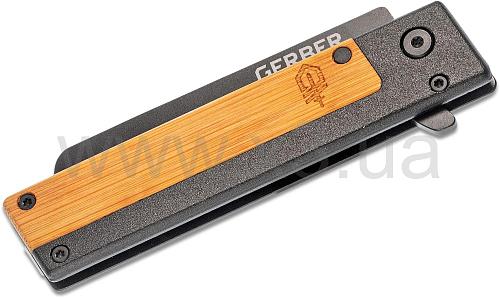 Ручка модели изготовлена с применением нержавеющей стали и древесины бамбука. Приятна на ощупь и удобна в удержании. Стильный нож защищён от случайного закрытия лезвия. Тип подшипника – шайбы из фосфористой бронзы. Доступна металлическая клипса, при помощи которой вы можете закрепить изделие, например, на поясе или на кармане.