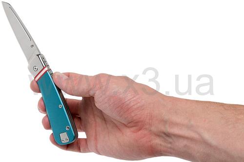 Складной карманный нож, тип лезвия – «овечья нога», годится в качестве EDC-варианта. В состав изделия входит сталь марки 7Cr17MoV, а также алюминий и фрагменты пластика. Твёрдость ножа составляет 56-58 единиц по шкале Роквелла. Предусмотрен ножевой механизм slipjoint. Длина ножа составляет 17,5 сантиметра, а его вес – 103 грамма.