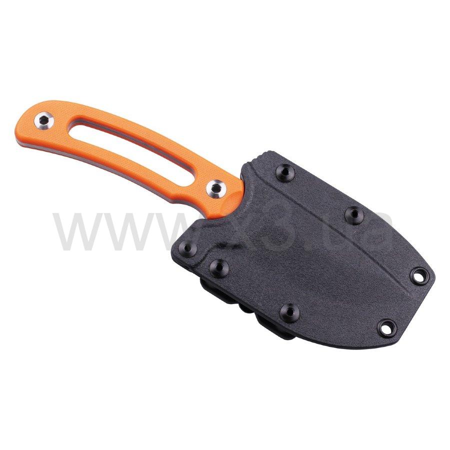 Носить этот нескладной нож можно в тех ножнах, которые входят в комплект. Они сделаны из пластика и оснащены специальным креплением на ремень, которое можно повернуть, как будет удобно пользователю. Нож сидит в таких ножнах плотно и остается в зоне быстрого доступа.