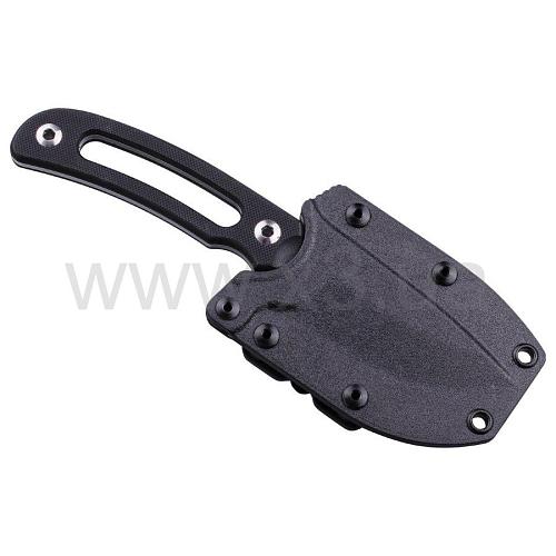Та же пластина стали, из которой сделан клинок, формирует и основу рукоятки ножа. Однако для более комфортного удержания Hornet F815 в руках, сверху на металлическую базу прикручены накладки из G10. Это особая разновидность стеклопластика, которая по характеристикам прочности приближается к металлу. Тем не менее, как и обычный пластик, G10 – очень легкий материал, которому так же просто придать нужную форму на этапе производства. Поверхность обеих накладок по всей площади сделана текстурированной, а потому нож не скользит в руках, даже если они мокрые. В центре рукоятки имеется большое сквозное отверстие, за счет которого вес модели Hornet F815 существенно уменьшен.