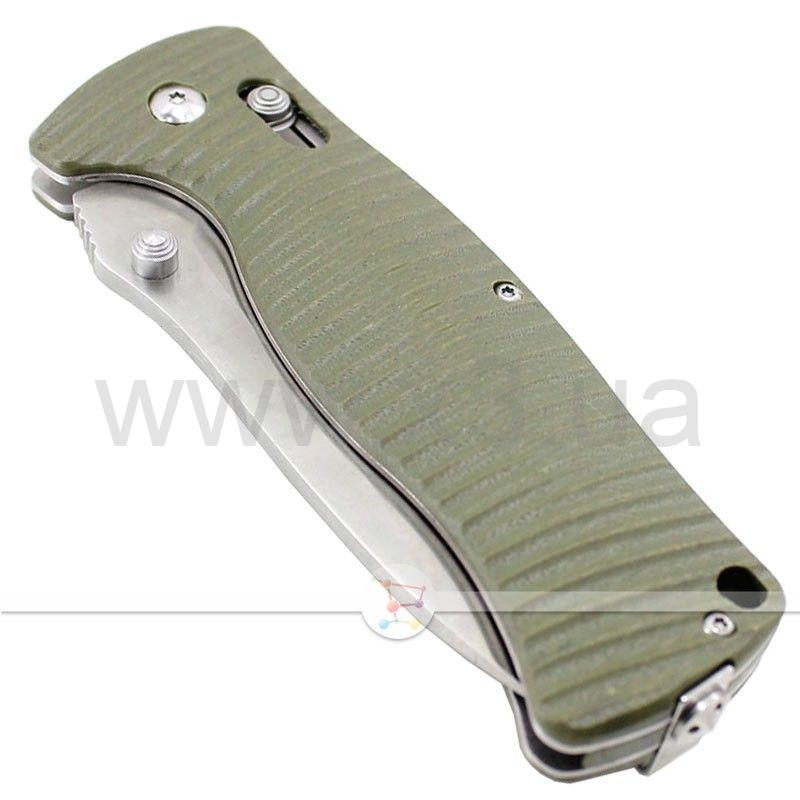 Рукоятка изготовлена из прочного современного материала G10, обладающего отличными характеристиками: высокой термостойкостью и сопротивляемостью химическому воздействию. По бокам рукоятки расположены рифленые накладки, благодаря чему нож не скользит и удобно «сидит» в руке. Также на рукоятке предусмотрена металлическая прижимная клипса, позволяющая разместить нож на ремне при транспортировке.