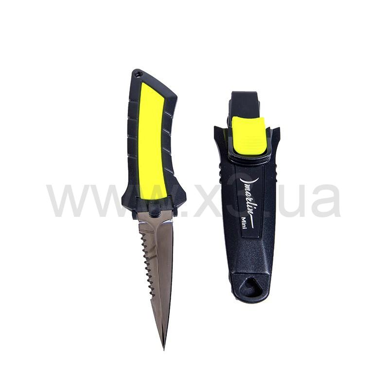Нож для дайвинга Marlin Mini Steel (Марлин Мини стил) с возможностью крепления на жилет, на разгрузочный ремень или шланги инфлятора.