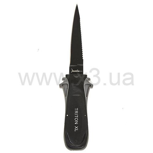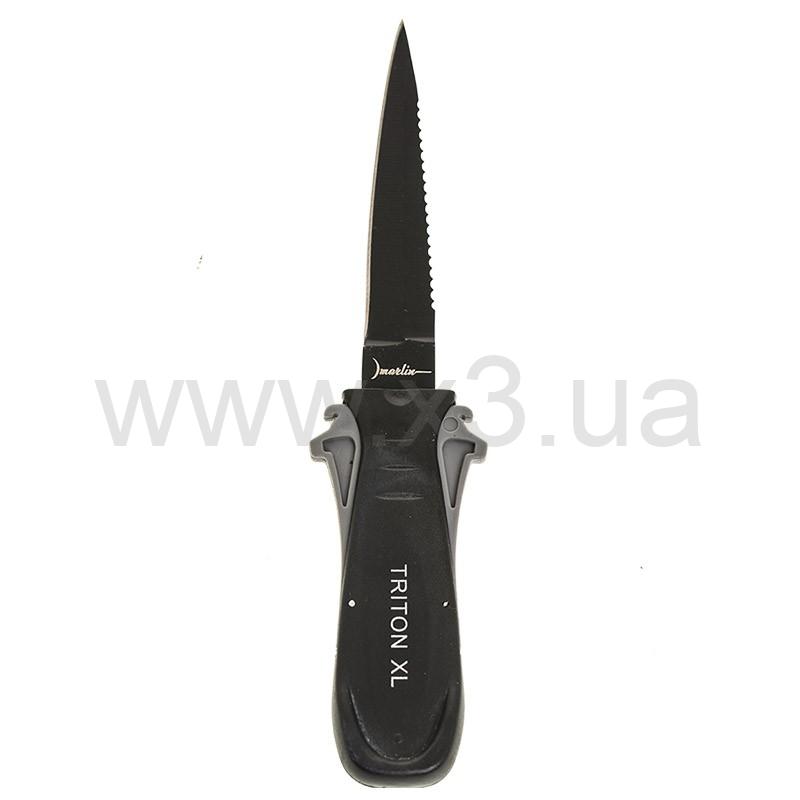 Нож Marlin Triton XL (Марлин Тритон XL) – классический нож для подводной охоты. Имеет форму типа стилет. Отлично подходит для крепления на руку, разгрузочный жилет или гидрокостюм. С одной стороны ножа – острая режущая кромка, с другой – пилообразный стропорез. Благодаря плоской форме хорошо подходит для охоты в стесненных условиях. Нож не нарушает общую гидродинамику тела, сводит к минимуму риск зацепиться за сети, подводную растительность или свой же линь.